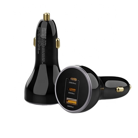USB C อะแดปเตอร์ชาร์จโทรศัพท์ในรถยนต์3พอร์ต3.0 QC ที่จุดบุหรี่ที่ชาร์จในรถ100W