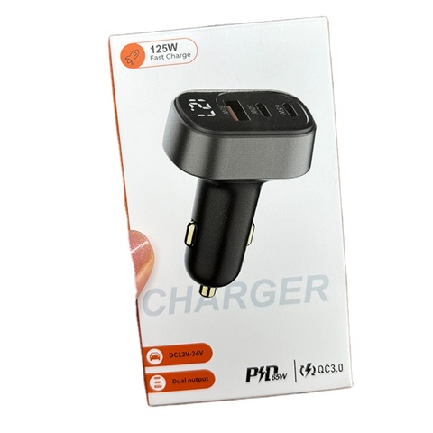ที่ชาร์จในรถยนต์แบบเร็ว3พอร์ต USB C หน้าจอแสดงผล LED 125W QC4.0 & PD3.0ชาร์จเร็ว